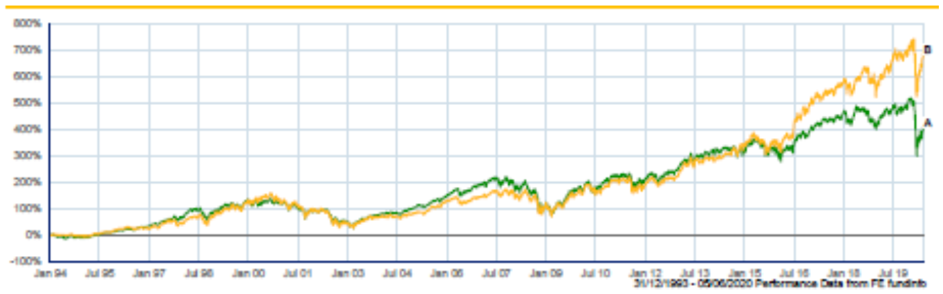 The chart below shows the FTSE All Share and FTSE World indices since the data began in 1994. We can see the dips caused by the tech crash in the early 2000s, the September 11th terrorist attacks, the 2008 Credit Crunch and financial crisis, and finally, the Coronavirus.